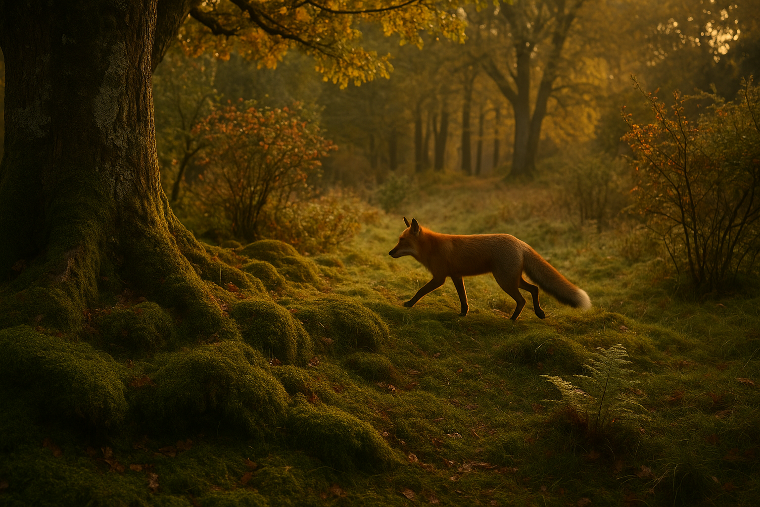 A vixen once trotted across the same forest floor that lent its breath to this scent, brushing through Irish moss and hart’s-tongue fern. The ancient sentinels — oak, hornbeam, hawthorn — bowed their mossy crowns, scattering leaf-blessings like wisdom-confetti. In her wake rose the perfume of amber resin and sage, of patchouli and loam — a wild hymn to the greenwood’s heart.